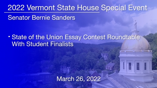 Senator Bernie Sanders - State of the Union Essay Contest With Student Finalists 3/26/2022