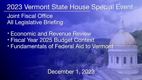 All Legislative Briefing: Economic and Revenue Review, Fiscal Year 2026 Budget Context, Fundamentals of Federal Aid to Vermont 12/4/2024